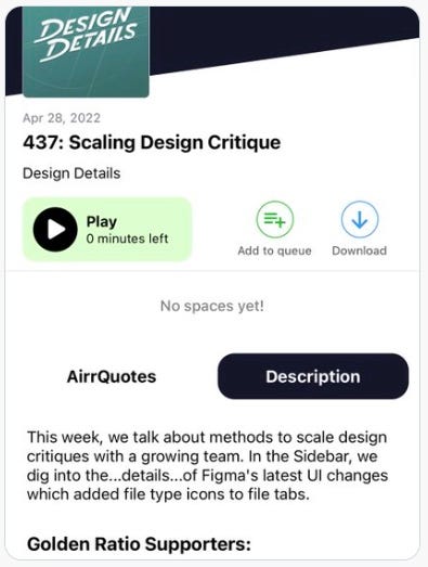 The latest episode of the Design Detail podcast discusses how to scale design critiques. Previously, design approval required feedback from more than 15 people, making it difficult for everyone to gather feedback. Here are a few tips that I learned: