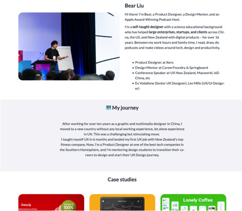 I thought about all sorts of solutions, but then I realized that my Bear Academy website could totally work for creating a Landing Page. And Iāve already shared case studies of my past projects on my blog. So, if Iām just looking at a Minimum Viable Product (MVP) for now, a simple Landing Page format would be enough to serve as my Portfolio.