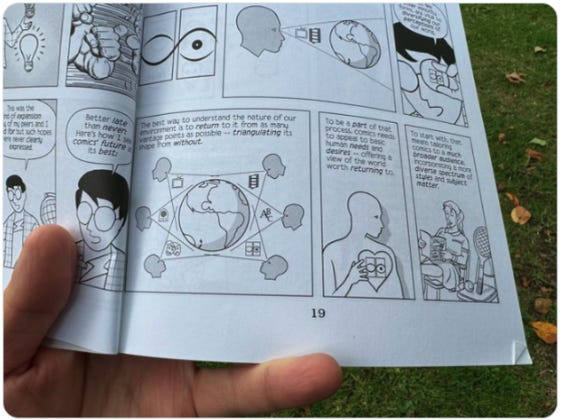 Scott McCloud, who once amazed everyone with his book āUnderstanding Comics,ā has another book I borrowed this week called āReinventing Comics.ā Itās quite niche, focusing on comic creation and theoretical development, and Iām finding it a bit tough to get through.