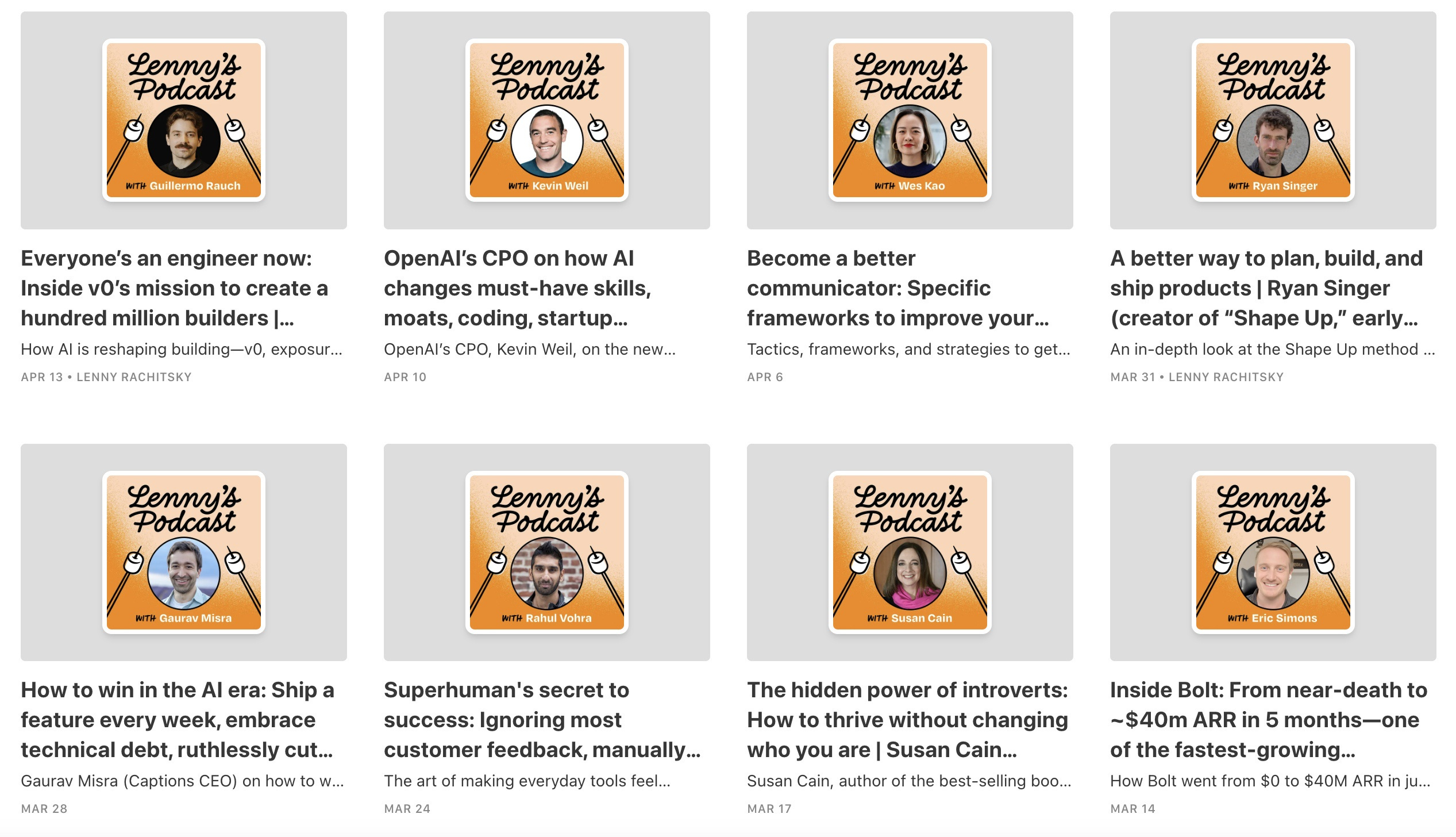 Every Tuesday, without fail, Lenny publishes one deep‑dive that solves a real reader problem. He keeps a monster question bank and picks the topic he’s personally curious about that week. Result: pieces that feel alive rather than AI‑flavoured porridge.
